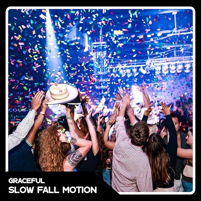- Versatile Decor for Special Occasions: Perfectly sized for Confetti Cannons, Flick Sticks, and Launchers, the biodegradable confetti also elevates table settings and backdrop designs. The rectangular shape creates a graceful cascading motion, adding movement and excitement to every celebration with vibrant color and eye-catching dimension.