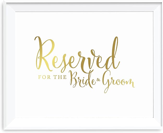 Andaz Press Wedding Party Signs, Metallic Gold Ink Print, 8.5x11-inch, Reserved for the Bride & Groom, 1-Pack, Unframed