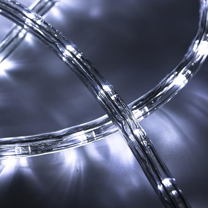 100ft Outdoor LED Rope Lights 1080 Connectable Flexible Tube Lights, IP65 Waterproof Rope Lighting for Garden Patio Pool Bedroom Party Christmas Halloween Holiday Indoor/Outdoor Decoration, Cold White