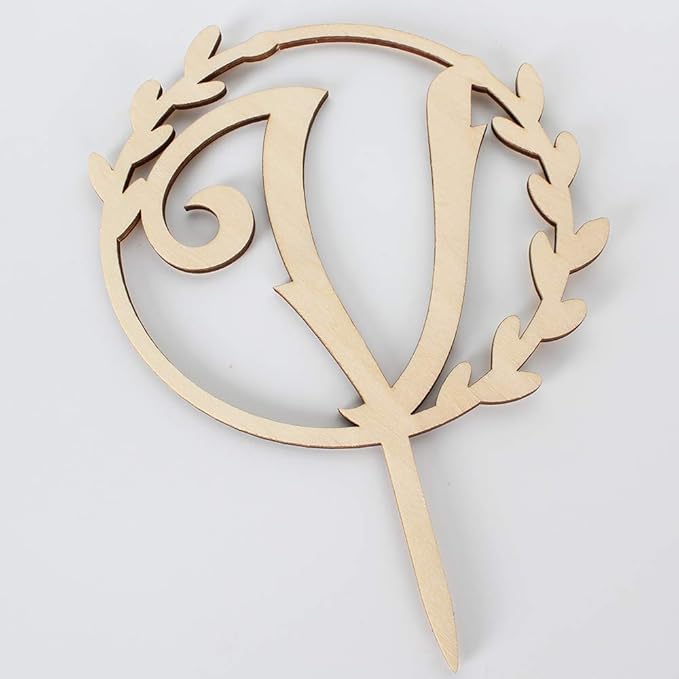LINGTEER Personalized Inital Letter V Wooden Cake Topper Perfect for Birthday Rustic Wedding Anniversary Party Keepsake Decoration