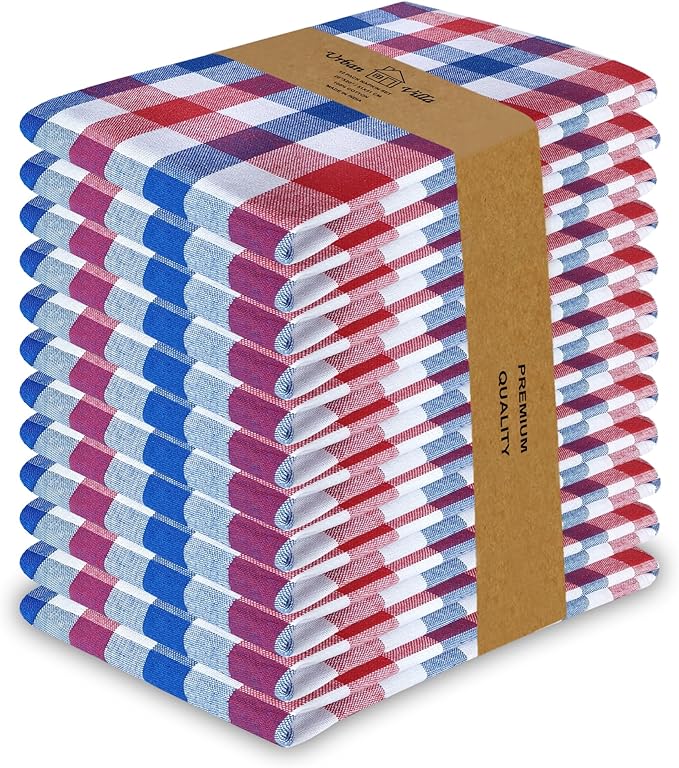 Urban Villa July 4th Cloth Napkins Red/Blue/White Dinner Napkins 100% Cotton (Set of 12) 20x20 Inches Buffalo Checks Highly Absorbent Soft Durable Reusable & Washable Table Dinner Napkins