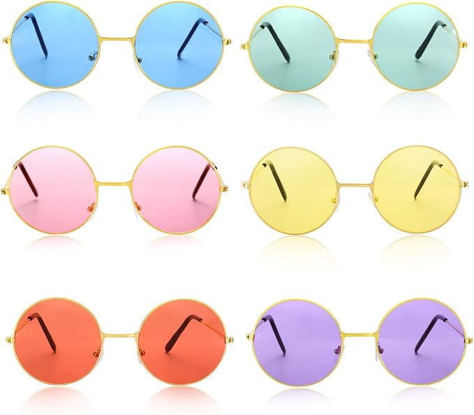 - Package contents: there are 12 pieces, 6 pieces hippie costume set, each set contains 1 piece sunflower flower crown and 1 piece hippie sunglasses, you will receive a total of 6 pieces beautiful headbands and 6 pieces hippie sunglasses