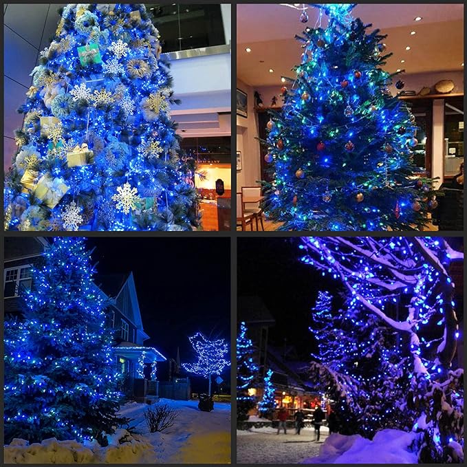 - Enchanting True Blue: The true blue bulbs are evenly distributed on the green wire, it is perfect for blending with foliage like trees and bushes. Transform your home into a captivating wonderland with these stunning blue LED Christmas lights. The captivating blue glow adds a touch of magic to any space, making it perfect for Christmas, Halloween, All Saints' Day, Hanukkah, Diwali, and more.