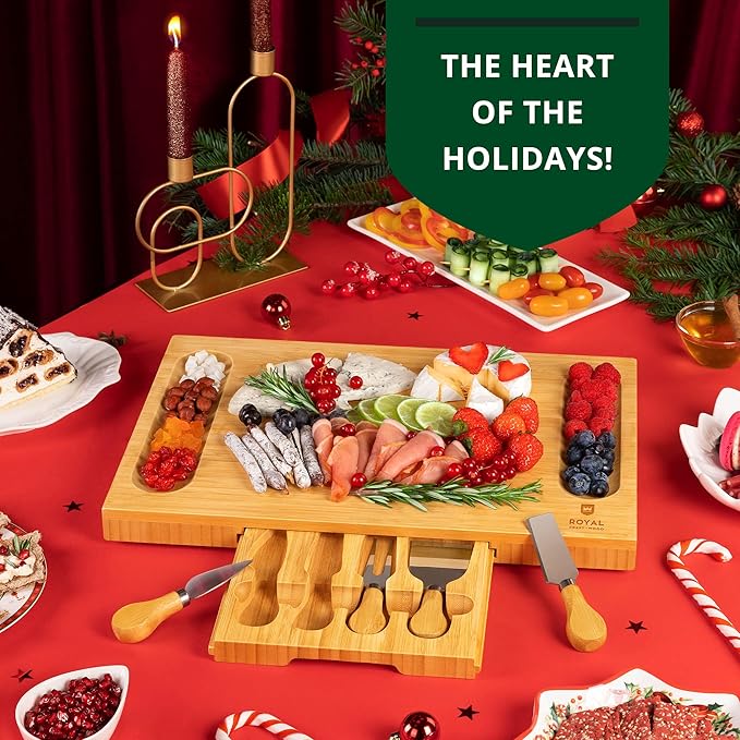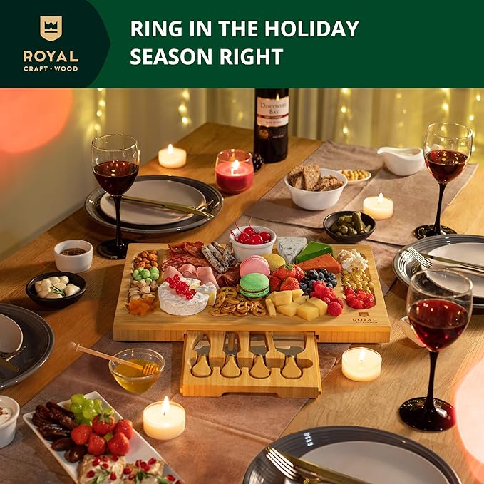 ROYAL CRAFT WOOD Premium Bamboo Charcuterie Board Set - Cheese Platter & Serving Tray & Serving Utensils - Perfect Housewarming Gift, Wedding, Bridal Shower Gift - Ideal for Entertaining and New Home