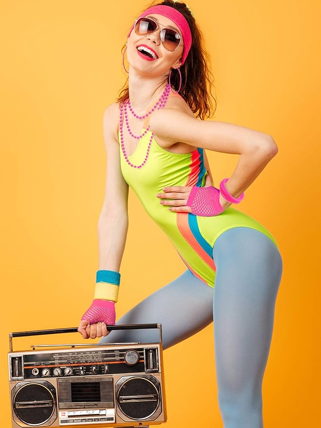 - 80s Accessory set: 80s fancy costume set contain 5 kinds of accessories, a good costume accessories for kinds of themed party and Halloween