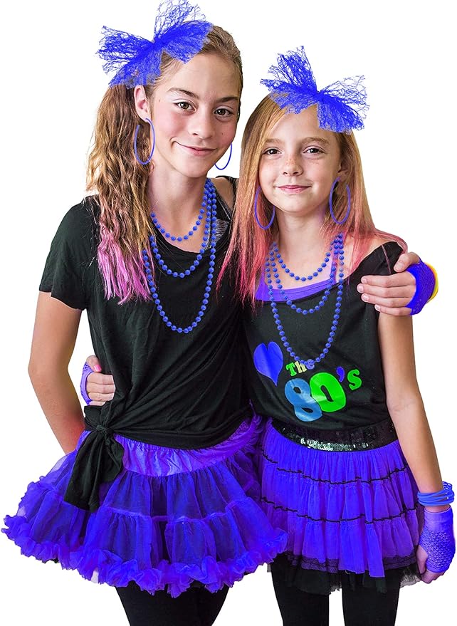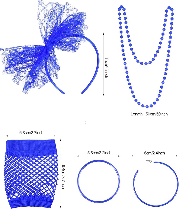 - Package Includes: 80s party supply includes 1 pair fishnet gloves, 1 pair vintage earrings and 1 piece headband, 1 piece necklace and 10 pieces silicone bracelets; Meet you demands for 80's costume accessories and Halloween