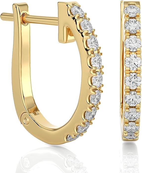 1/5 to 3/4 Carat Diamond Huggie Hoop Earrings for Women in 14k White or Yellow Gold (F-G, SI2-I1, cttw) with Hinge and Notched Post by Privosa Fine Jewelry