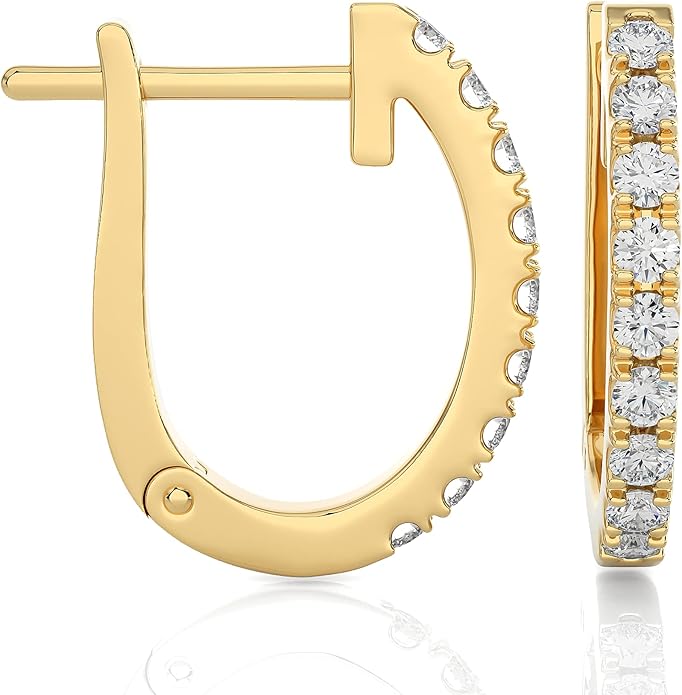 1/5 to 3/4 Carat Diamond Huggie Hoop Earrings for Women in 14k White or Yellow Gold (F-G, SI2-I1, cttw) with Hinge and Notched Post by Privosa Fine Jewelry