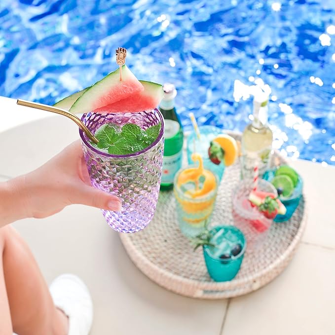 - EASILY STACKABLE: Sort your kitchen space in a minute with the super stackable Laguna Beach plastic tall tumblers. These break-free glasses fit everywhere smoothly without any fuss.