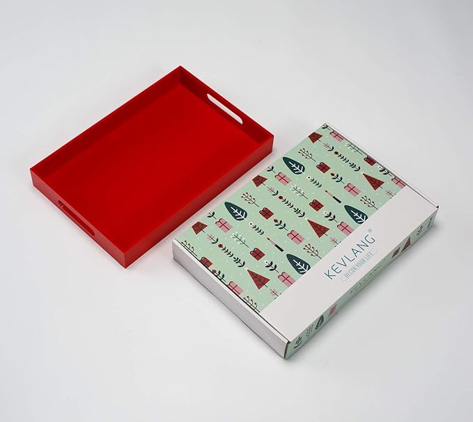 Sturdy Red Acrylic Serving Tray with Handles - 10x15Inch, Coffee, Appetizer, Breakfast, Butler Tray - Kitchen Countertop & Vanity Table Organizer