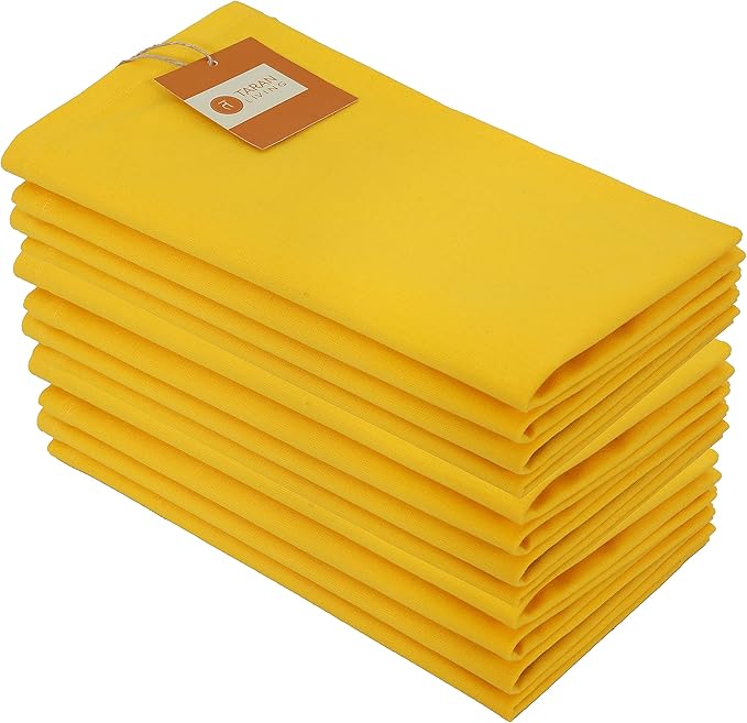 TARAN LIVING Cotton Cloth Napkins Solid Bright Yellow Easter Dinner Napkin Table Cloth Napkins Gift for Her Him Parties Holiday - 18x18 Inches Pack of 12