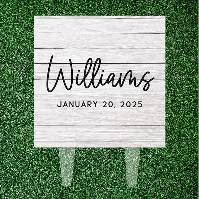 Andaz Press Distressed Whitewash Wood With Date Custom Wedding Cake Topper, Acrylic Square Personalized Couple Cake Topper