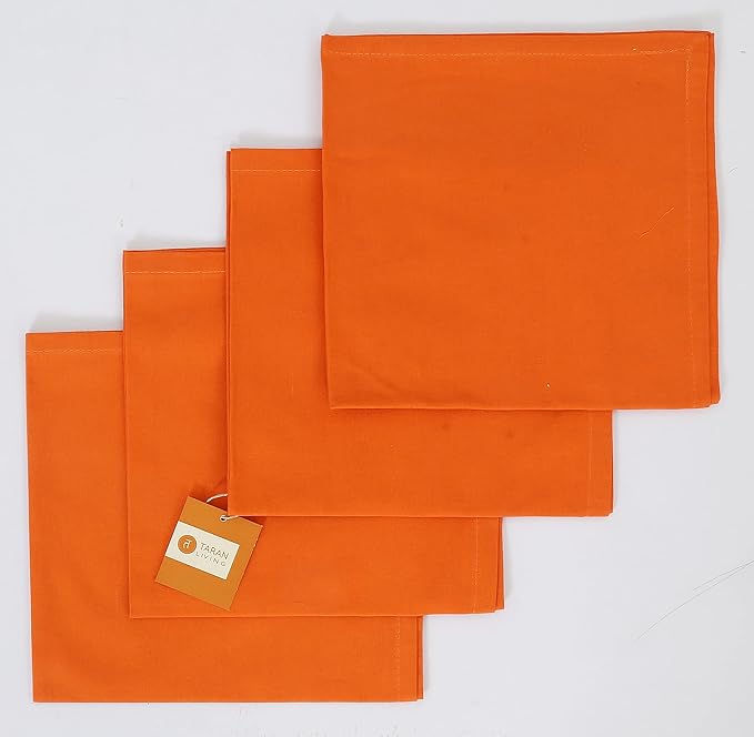 TARAN LIVING Cloth Napkins Fall Decorations Table Napkin Reusable Washable Halloween Dining Linen Cotton Cloth Napkin Christmas Hotel Home Party Decor Set of 12, 18"x18" - Orange