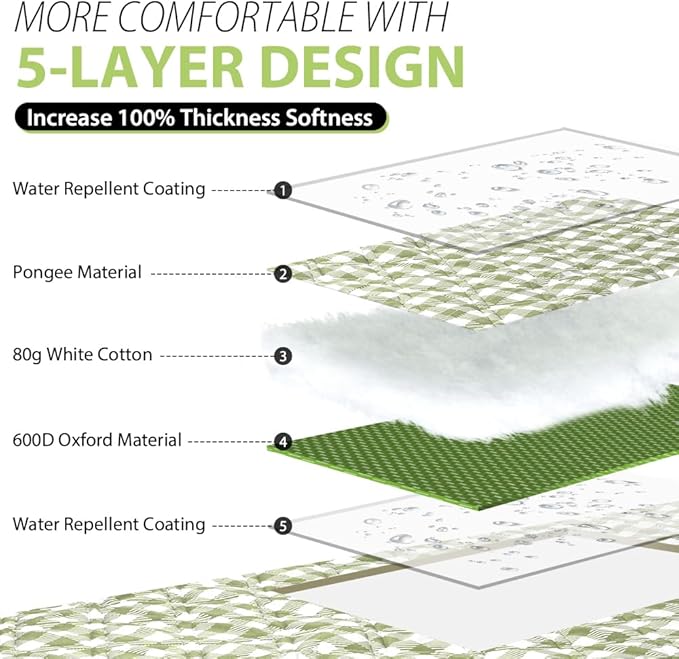 - Soft and Durable with 5-Layers: Made of 5 layers, our picnic mat has thickened and sturdy fabric on the top, soft 100 % Polypropylene for middle and solid fabric backing. Perfectly suitable for siting or lying on grass, beach, floor or any kindly of surface, giving you soft and comfortable feelings