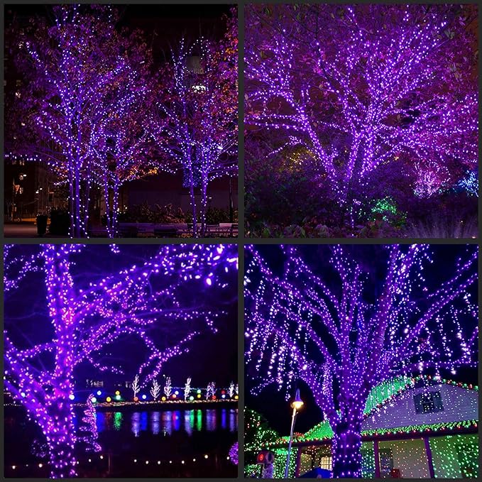 - Vibrant Purple Light: With 100 vividly shining LED purple bulbs, green wire string lights bring a unique and striking appearance to your tree, garden, patio. It is a true deep purple, not a reddish purple or pink, these lights ensure your holidays twinkle in an enchanting purple hue. They're not just lights, they're tiny vibrant violets lighting up your holiday spirit!