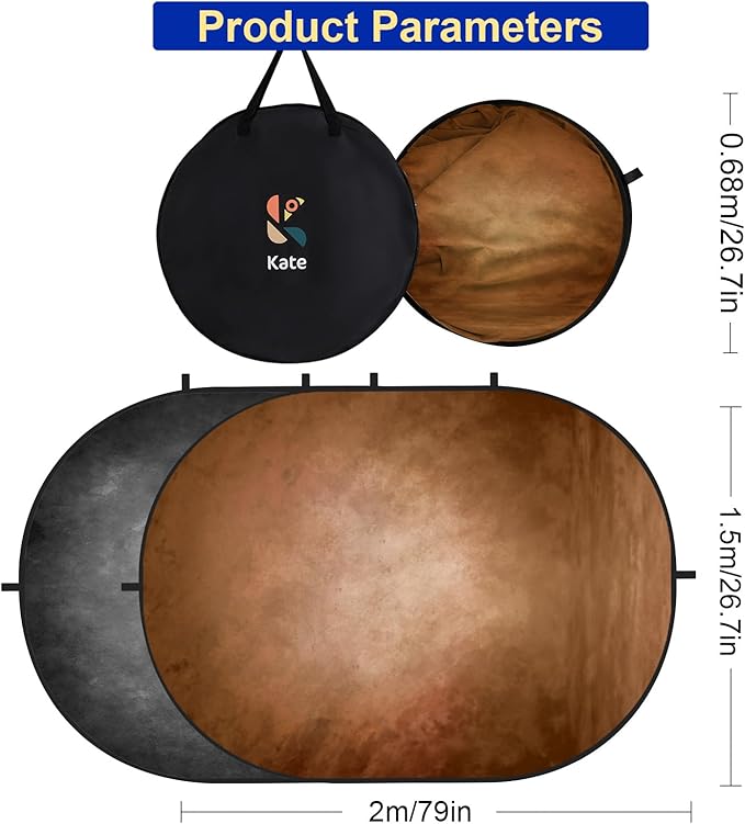 - 1x 5x6.5ft/1.5m(W) x 2.0m(H) collapsible backdrop. Both sides are Kate fabric backdrops which can be used as photography background.