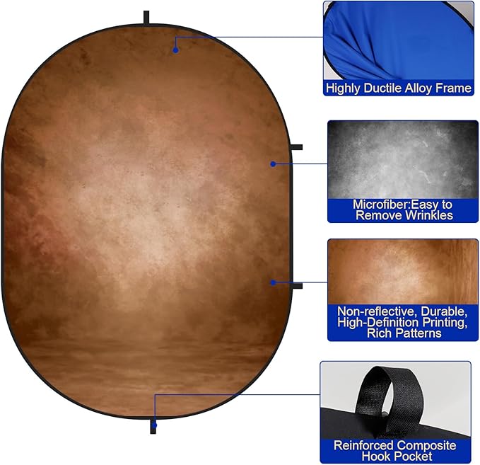Kate Collapsible Backdrop Pop Up Photo Backdrops Grey Brown Portable Background for Portrait Photography, for Video Conference, for Live Stream, 5x6.5ft
