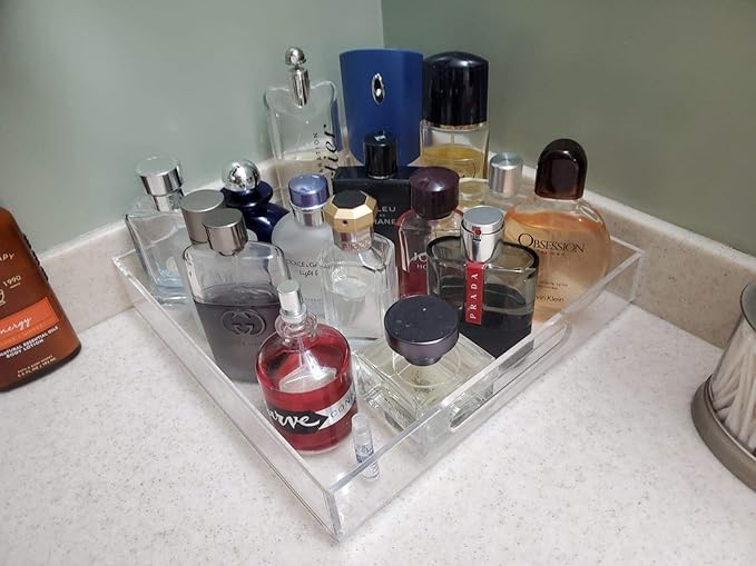 - Acrylic tray organiser is perfectly to place under an espresso maker,store spice oils jars in kitchen cabinet,hold wine bottles in bar,prevent water from plant pots off your carpeting.