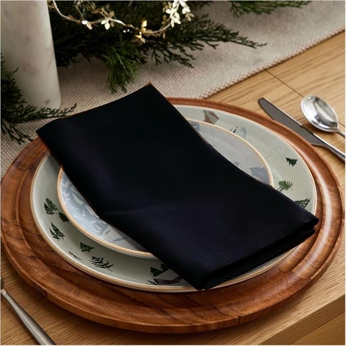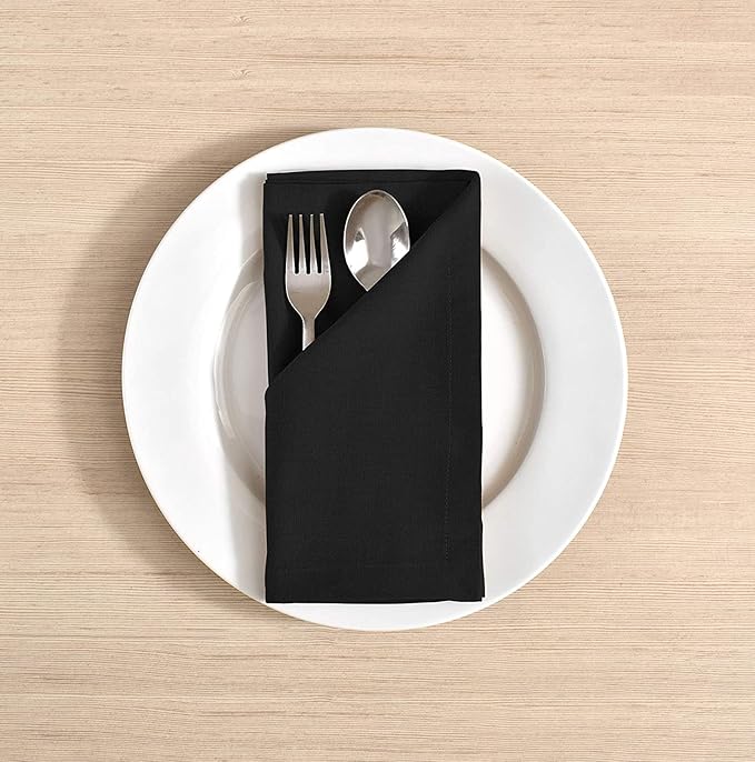 TARAN LIVING Cotton Table Décor Durable Washable Table Cloth Napkins Set Dinner Fall Sustainable Cotton Cloths Perfect for Gifts - Set of 12 18x18 Inch - Black