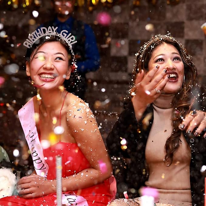 AOPRIE Birthday Girl Headband Crown for Women & Girls - Happy Birthday Princess Tiara Rhinestone Accessory, Pink
