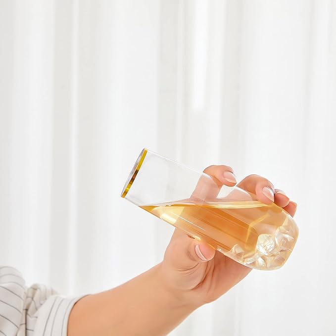 N9R 36PCS Plastic Champagne Flutes, 9 Oz Stemless Disposable Gold Rim Toasting Glasses, Crystal Clear Cocktail Cups Drinkware Shatterproof Ideal for Party Wedding Birthday