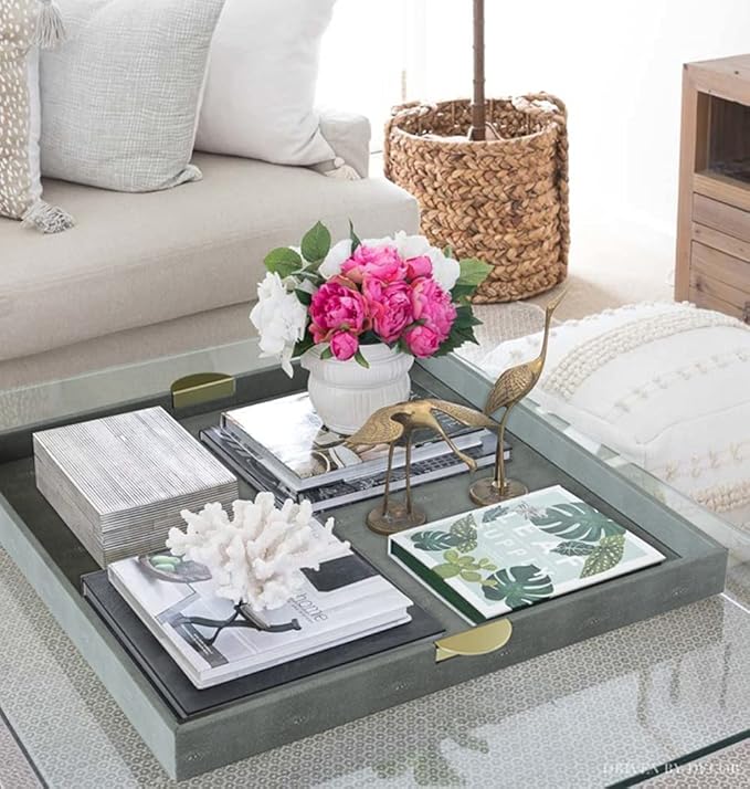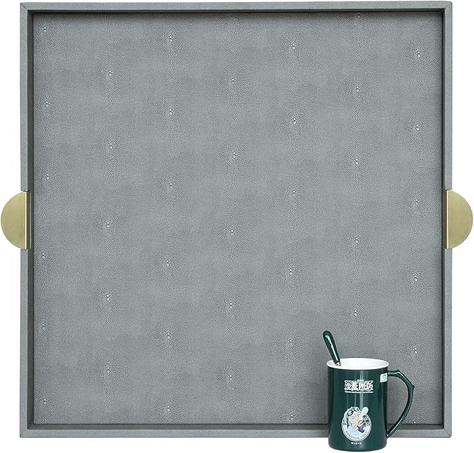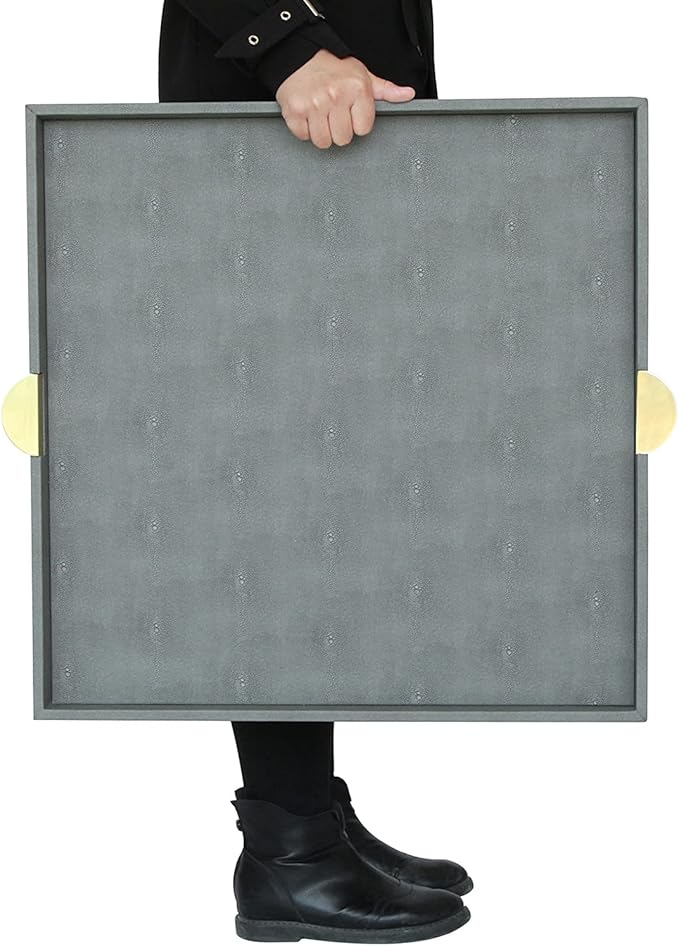 - This tray organizer is made of elegant faux leather, mdf, velvet, and the dimension: 23.6 x 23.6 x 2 inches.Perfect size for as serving tray, decorative tray, ottoman tray and more.