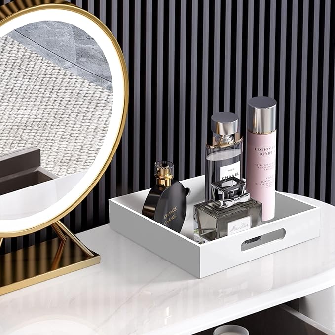 - DECORATIVE STORAGE TRAY: The Timeless Look Trays Can Perfect Decorate Your Home. It Can Be Used as A Bathroom Vanity Tray, Makeup Tray Organizer, Kitchen Condiment tray, Coffee Table Organizer Tray or Nightstand Tray.