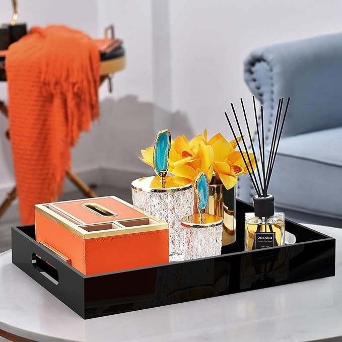 - DECORATIVE STORAGE TRAY: The Timeless Look Trays Can Perfect Decorate Your Home. It Can Be Used as A Bathroom Vanity Tray, Makeup Tray Organizer, Kitchen Condiment tray, Coffee Table Organizer Tray or Nightstand Tray.