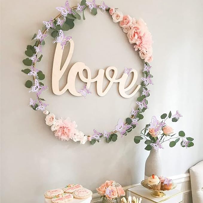 40 PCS Mixed Size Pink Butterfly Cupcake Toppers Hollow Art 3D Butterfly Cupcake Decorations Baby Shower Wedding Anniversary Kids Birthday Party Cake Wall Decorations Supplies