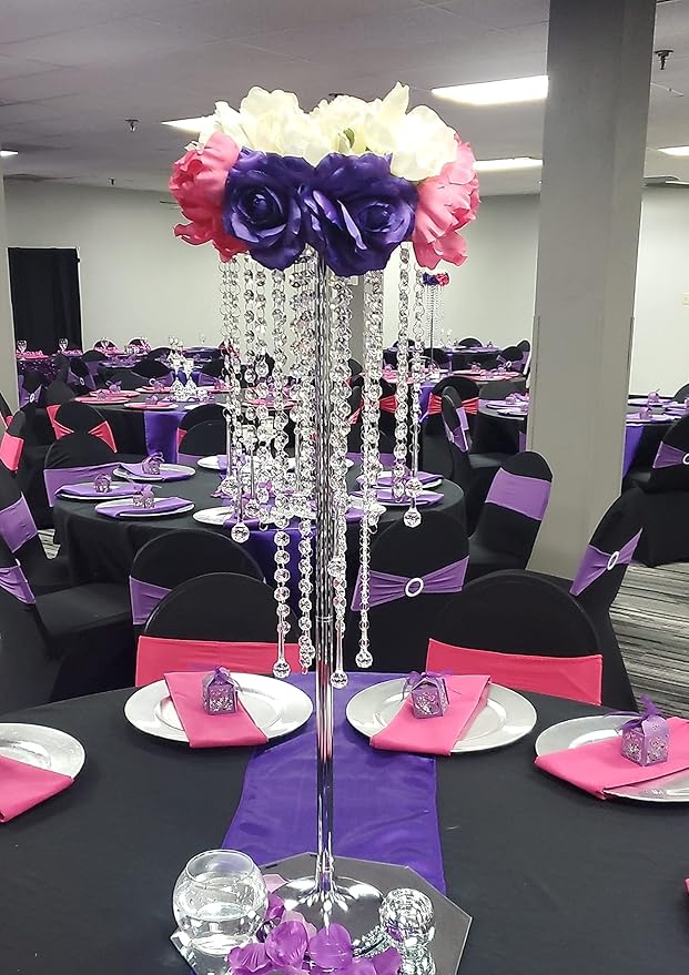 - ELEGANT DESIGN: This charming and sparkling flower stand is especially suitable for wedding centerpieces and is made of high quality metal. Add sparkling sparkle to any festive occasion by placing sparkling drip-style acrylic crystals on an elegant stand. Beautifully styled with modern design, you can decorate it with hanging flower vines or place flower balls on top, it will definitely make your wedding, party or home more gorgeous and attractive even without any matching.