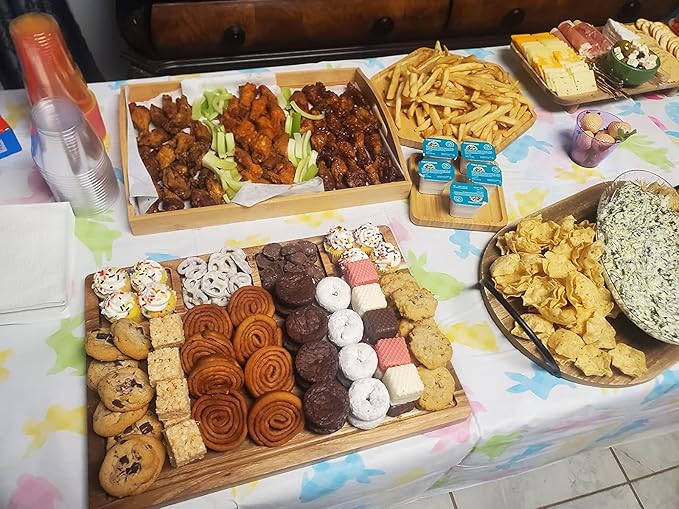 Bamboo Serving Trays Charcuterie Platter 16.5"x11.8"(42x30cm with Handle, Set Includes 1xHexagon 12.5"(32cm)+1xSquare 7.8"(20cm)+1xSquare 5.9"(15cm) Small Plates for Family Dinner