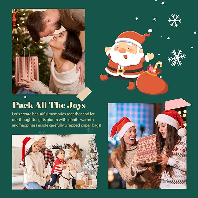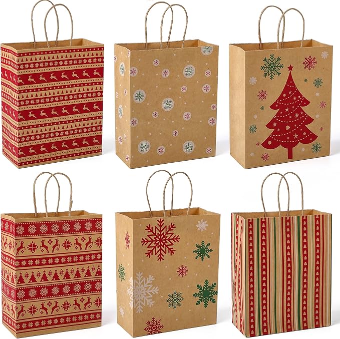 - 【Multi functional Kraft gift bag】Great for packaging candy, cookies, gifts, souvenirs, and a very popular Christmas gift bag for kids and friends.This high-quality kraft paper gift bag is perfect for Christmas gift packaging, holiday gifts, Christmas decorations, and more. They are essential items for the Christmas holiday. It is also the best choice for wrapping gifts for family and friends.
