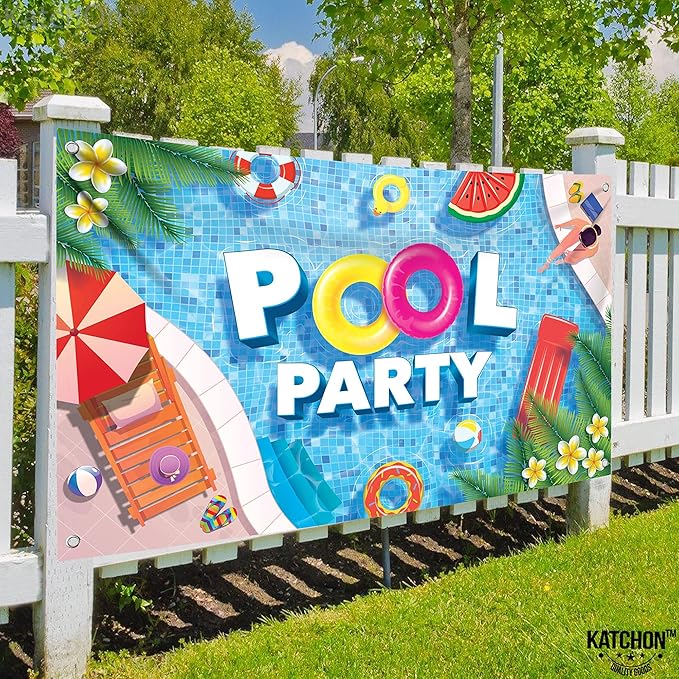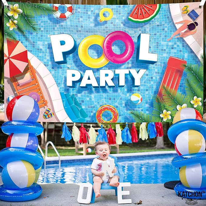 - REUSABLE | STURDY WITH BEAUTIFUL COLORS AND FLOWERS : Life is cool if you are by the pool. This summer pool party decorations for adults will be all you need to blow off the summer heat with our pool party birthday decorations or a beach bachelorette party decorations or pool party backdrop for birthday party, it's a ideal, Make a splash on your child's special day or special ones birthday with our festive katchon pool party banners for summer party decorations in our end of summer pool party supplies.