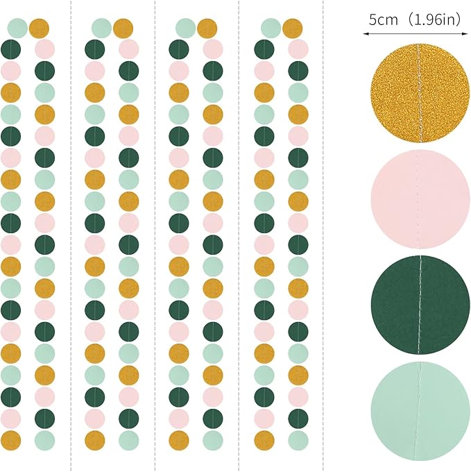 - 【Package including】The party garlands includes 4 x paper garlands, each backdrop bunting is 13 feet/ 4 meters long, total length is 52 feet/ 12 meters. Every Streamer Banner has 40pcs dots which the size is 1.97”