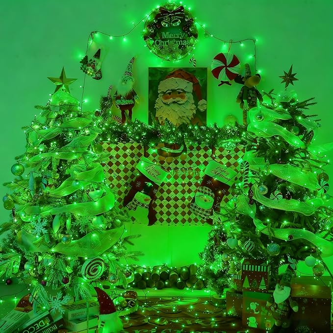 YEGUO 66ft 200 LED Green Halloween Lights Outdoor Waterproof, Green Wire Christmas String Lights Indoor, 8 Modes Twinkle Tree Lights Plug in with Timer Memory