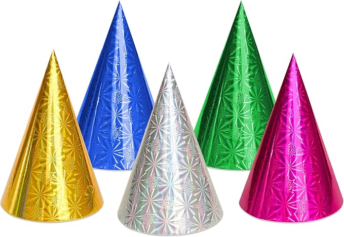 - Reusable & Lightweight- These metallic color cone hats are made of paper, lightweight and reusable, durable and reliable, each measures approx. 7.87 x 5.5 inch, suitable for most people's heads and pet.The rope of the hat is also elastic, making these hats comfortable to wear