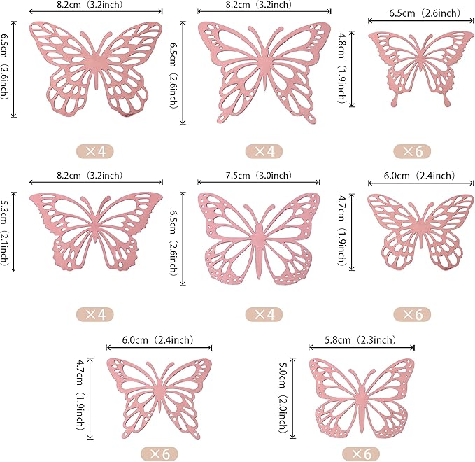 - Use Points ! The package is including the glue point dots, butterfly gently fold can be a butterfly which has a 3D effect,then you can put them with dots to the cake and cupcake, you can also use it as wall decorations, there is no sticks.