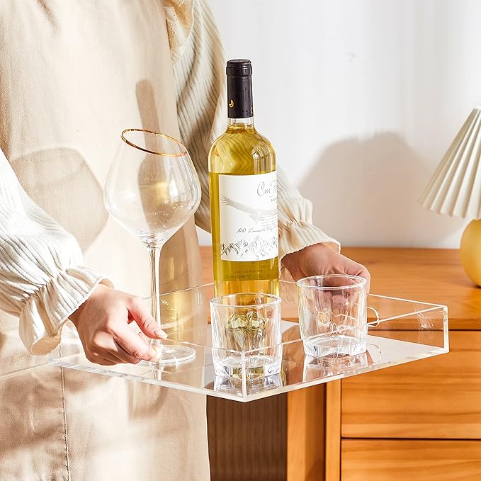 - MULTI-PURPOSE: With handles on the side, the tray is easier for serving breakfast, appetizers, coffee, drinks, desserts, food in bed for kids guests or use after surgery. Wonderful organizer tray for by the door, on your desk, or in the bathroom. Great for the kitchen and bar.