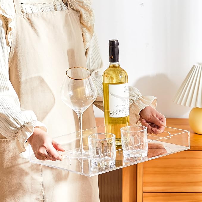 - MULTI-PURPOSE: With handles on the side, the tray is easier for serving breakfast, appetizers, coffee, drinks, desserts, food in bed for kids guests or use after surgery. Wonderful organizer tray for by the door, on your desk, or in the bathroom. Great for the kitchen and bar.