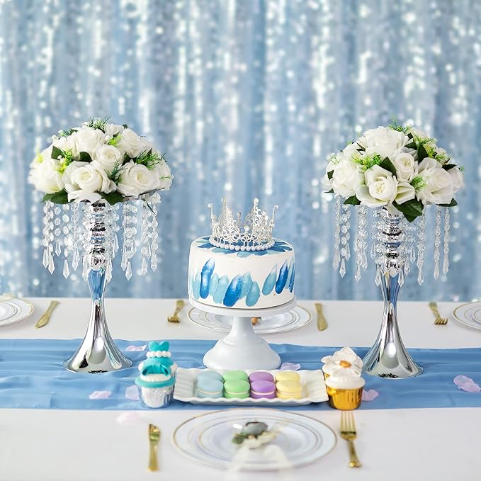 - Easy to Install&Packing List: No tools required. Inweder tall vases for centerpieces can be quickly installed in a couple of minutes. Besides, we provide a Detailed Instruction Manual and an Installation Video that can help you install the centerpiece table decorations without any difficulty. Packing List: 2 x Silver Vases (Height is 13.8", Base Diameter is 5.12", Top Diameter is 7.87"),1 x Instruction Manual.