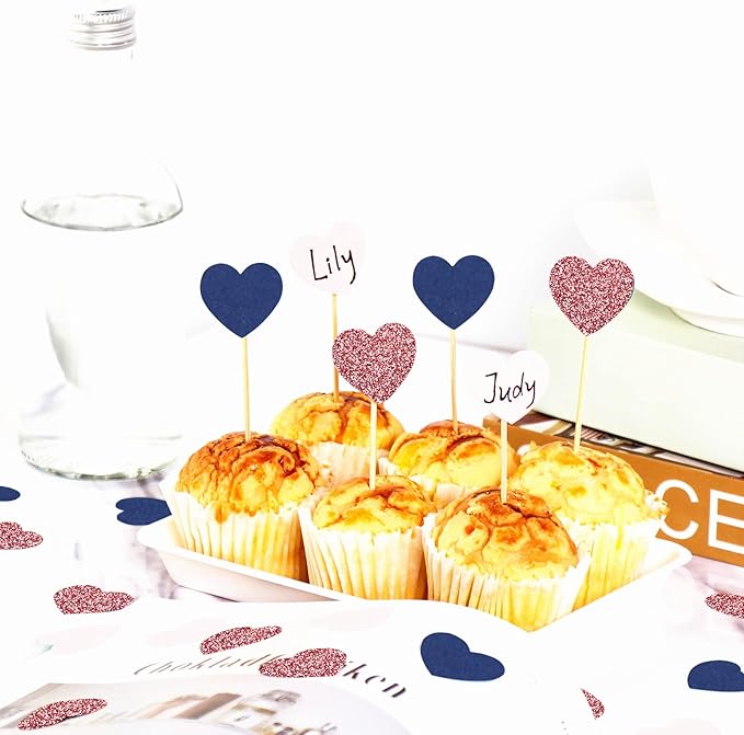 Navy-Blue Pink Rose-gold Heart Confetti - 300pcs Decor Glitter Paper Dots Gender Reveal Graduations Wedding Bachelorette Engagement Birthday Party Table Decorations Lasting Surprise