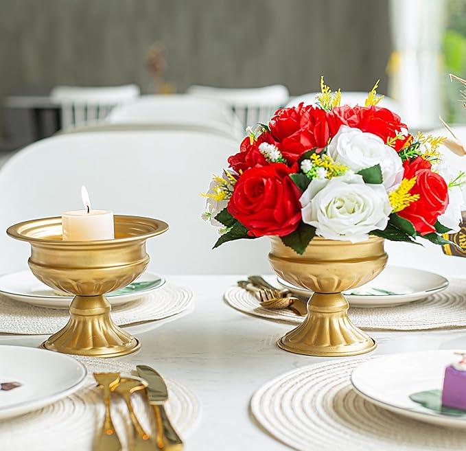 - VIVID & ELEGANT: Each faux flower bouquet with base has 15pcs, they measures 4.7" tall, diameter of one flower approx 10.3". The artificial roses are look beautiful and vivid. Imparting a elegant radiance to dull tables, backdrops, vases and centerpieces.