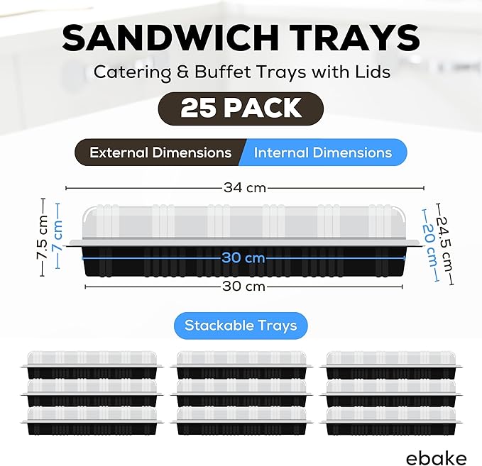 - πγ Versatile & Easy to Use γThe crystal-clear plastic lids provide a secure seal, keeping your sandwiches fresh and protected during transportation or storage. Plus, their transparency allows you to showcase your culinary creations without even opening the lids. And while these appetizer trays for parties excel at sandwich presentation, they're versatile. You may use them for serving finger foods, appetizers, desserts, or as a meal prep container. The possibilities are endless!