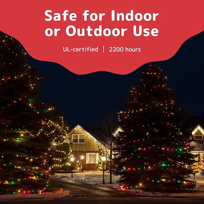 - """Effortless Setup and Versatility: Multi color Christmas lights white wire for a seamless look on indoor or outdoor displays; designed to enhance trees, patios, and holiday settings"""