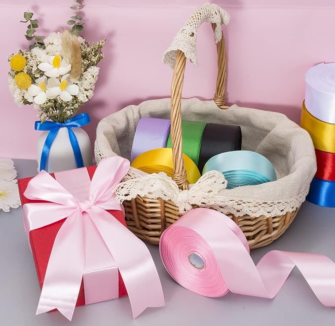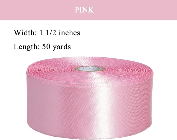 1 1/2 Inch Pink Solid Satin Ribbon, 50 Yards Craft Fabric Ribbon for Gift Wrapping Floral Bouquets Wedding Party Decoration