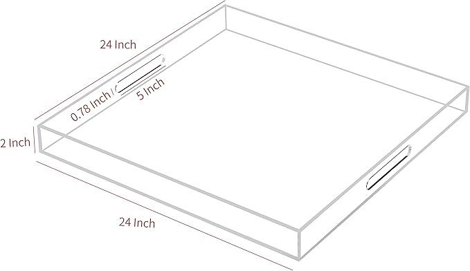 Large Clear Acrylic Serving Tray with Handles-24x24x2 Inch Spill Proof Tray for Ottoman,Coffee Table, Breakfast, Tea, Food, Butler -Safe Edge Organizer-King Size