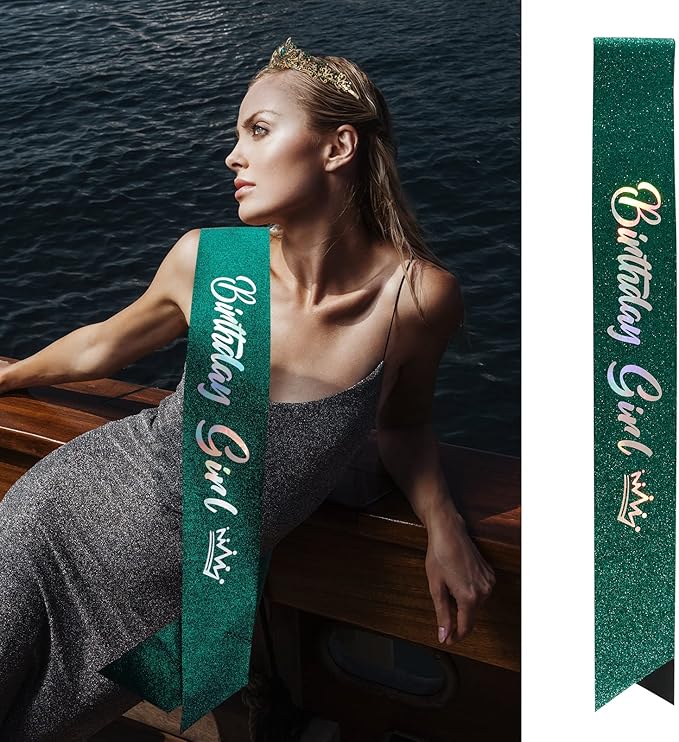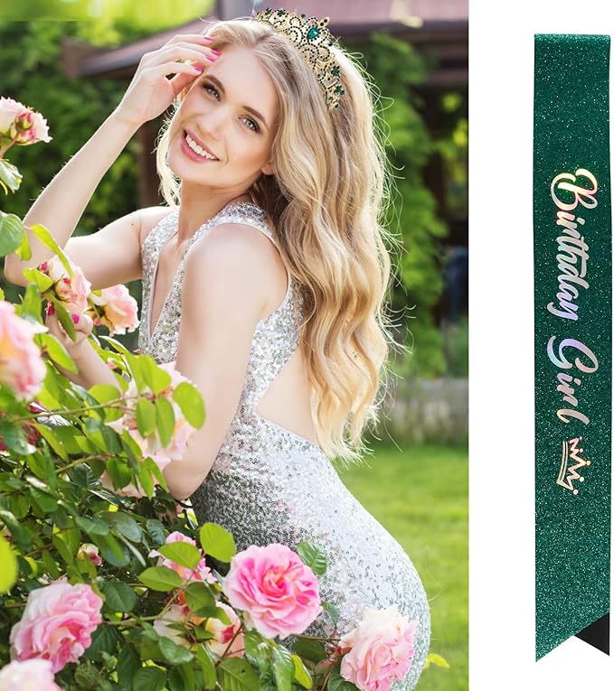 VELSCRUN Birthday Tiara & Crown Set - Princess Sash, Happy Birthday Girl Tiara, Party Decorations & Gifts