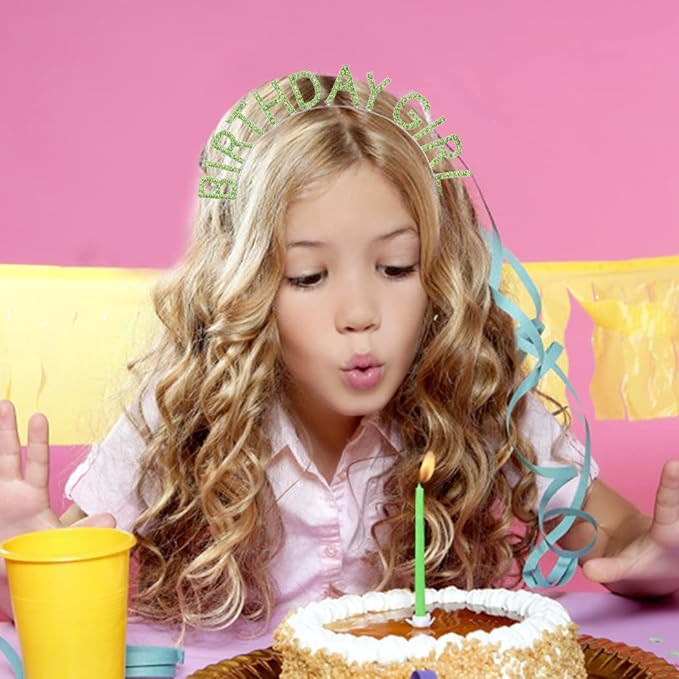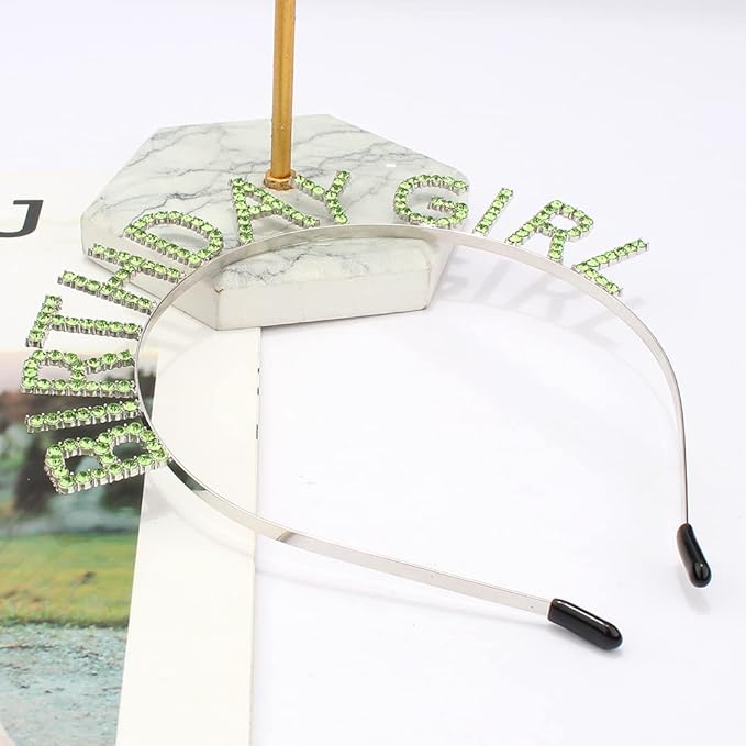 AOPRIE Happy Birthday Princess Crown Tiara, Silver Green, for Women and Girls, Rhinestone Birthday Accessories