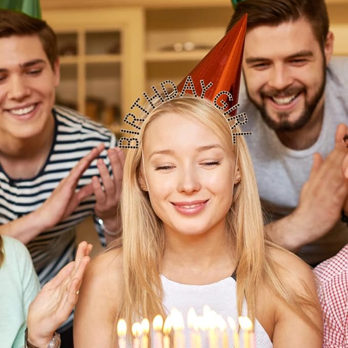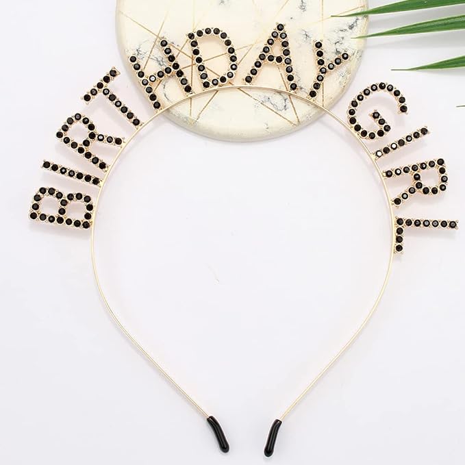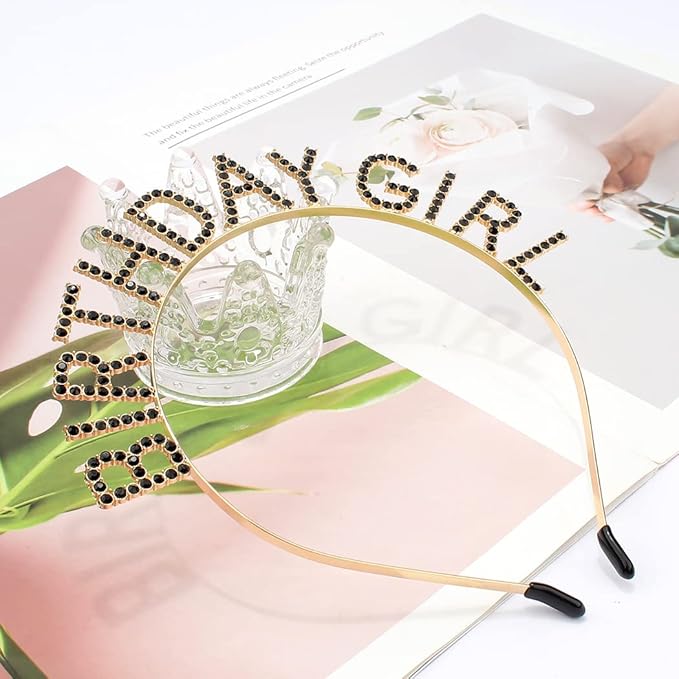 AOPRIE Rhinestone Hairband Birthday Tiara for Women Girls, Happy Birthday Princess Crown, Gold Black