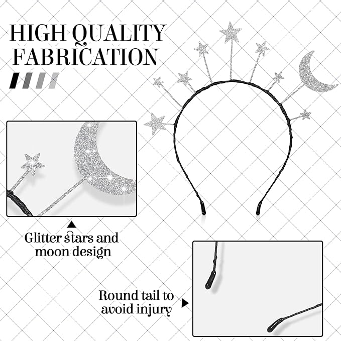 - Package Includes: you will get 8 pieces of star moon headbands, each measures 8.66 x 8.46 inch; Sufficient quantity meet your various parties demands, and you can share them with your parties buddies
